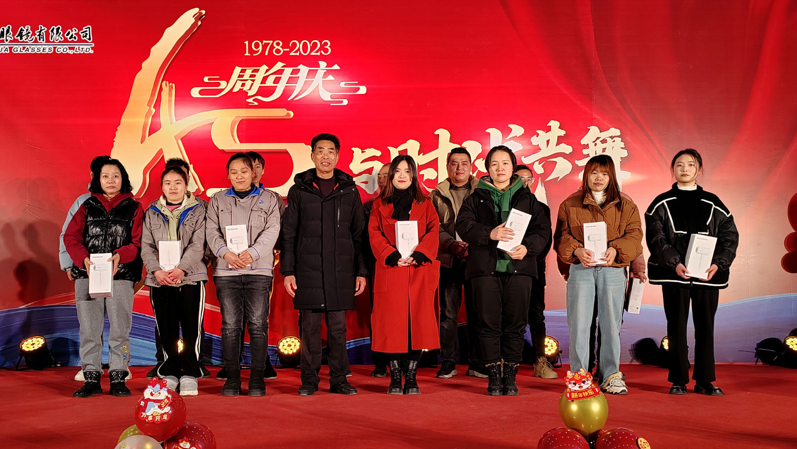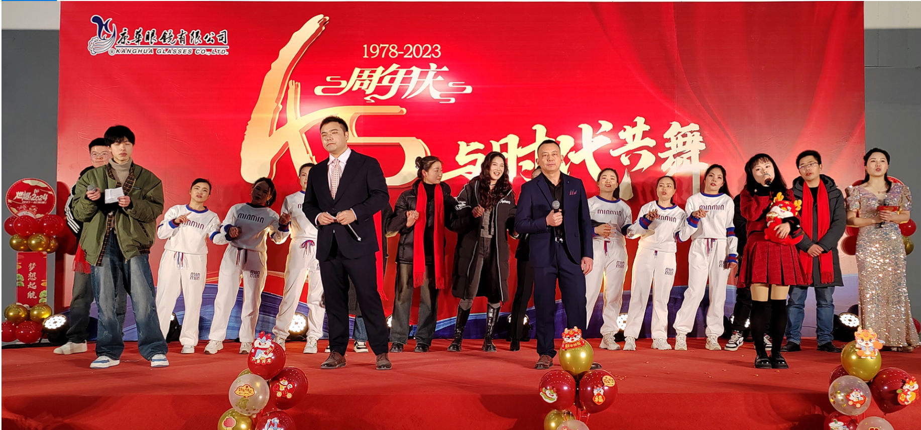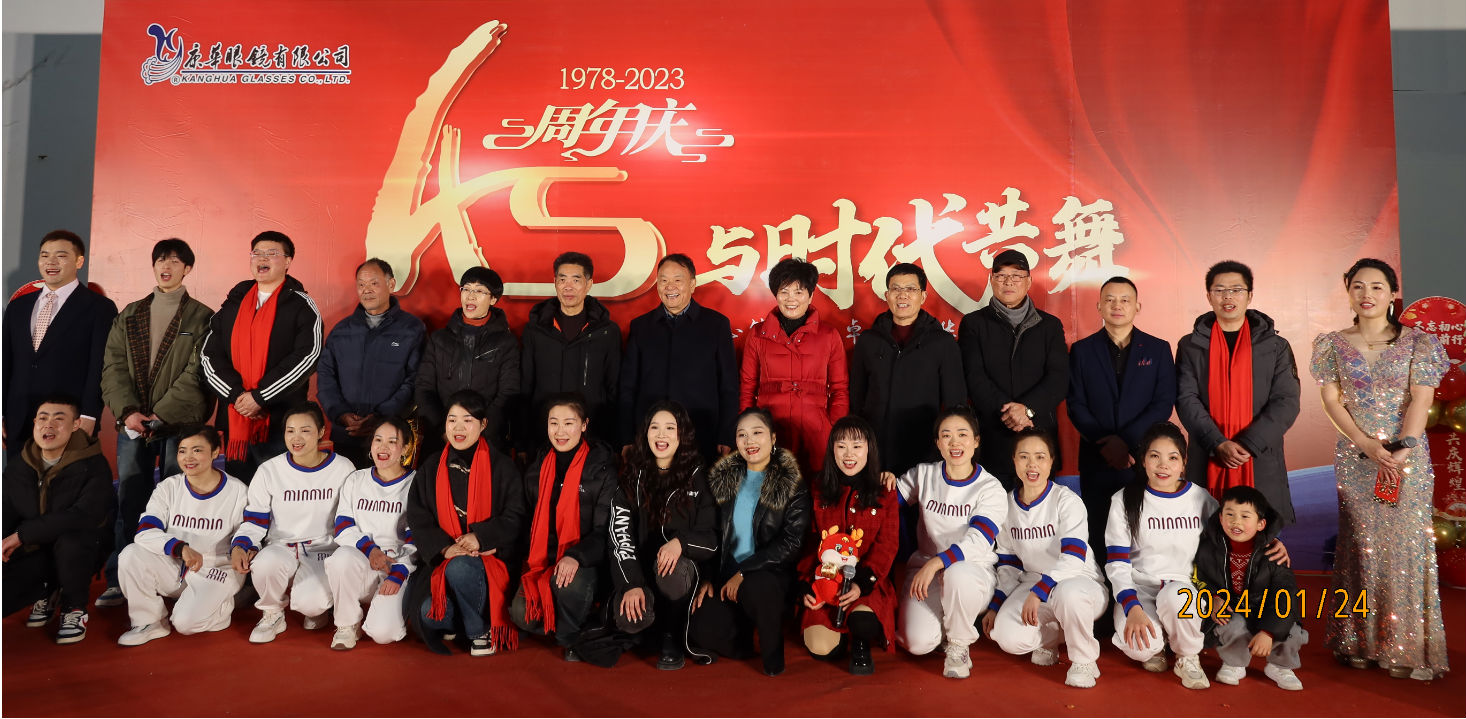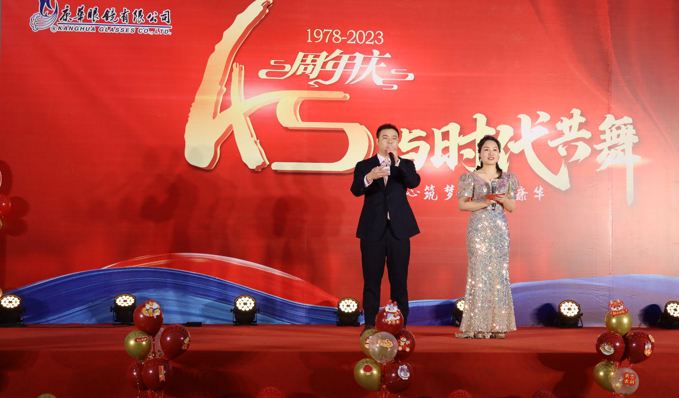 时光荏苒,岁月如梭,在经历了四十五个春秋的沉淀与积累后,浙江康华有限公司于2024年1月24日晚在公司内部隆重举行了45周年庆活动。公司董事长高克胡先生、运营总监杨香菜女生、技术副总罗邦法先生和股东及部分老朋友出席了本次活动,康华眼镜、康华铜业、康兴智能设备以及康诚贸易全体员工共同分享了45周年庆的喜悦与精彩。