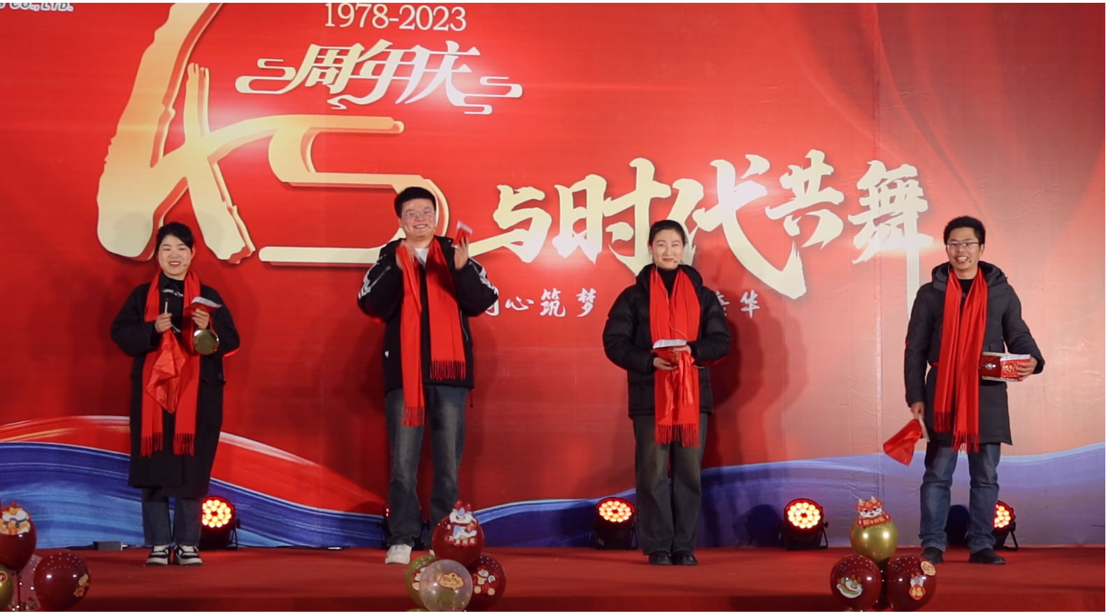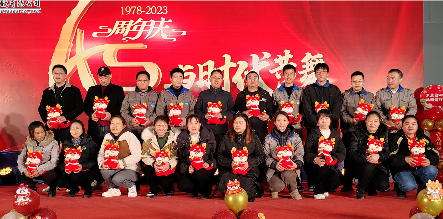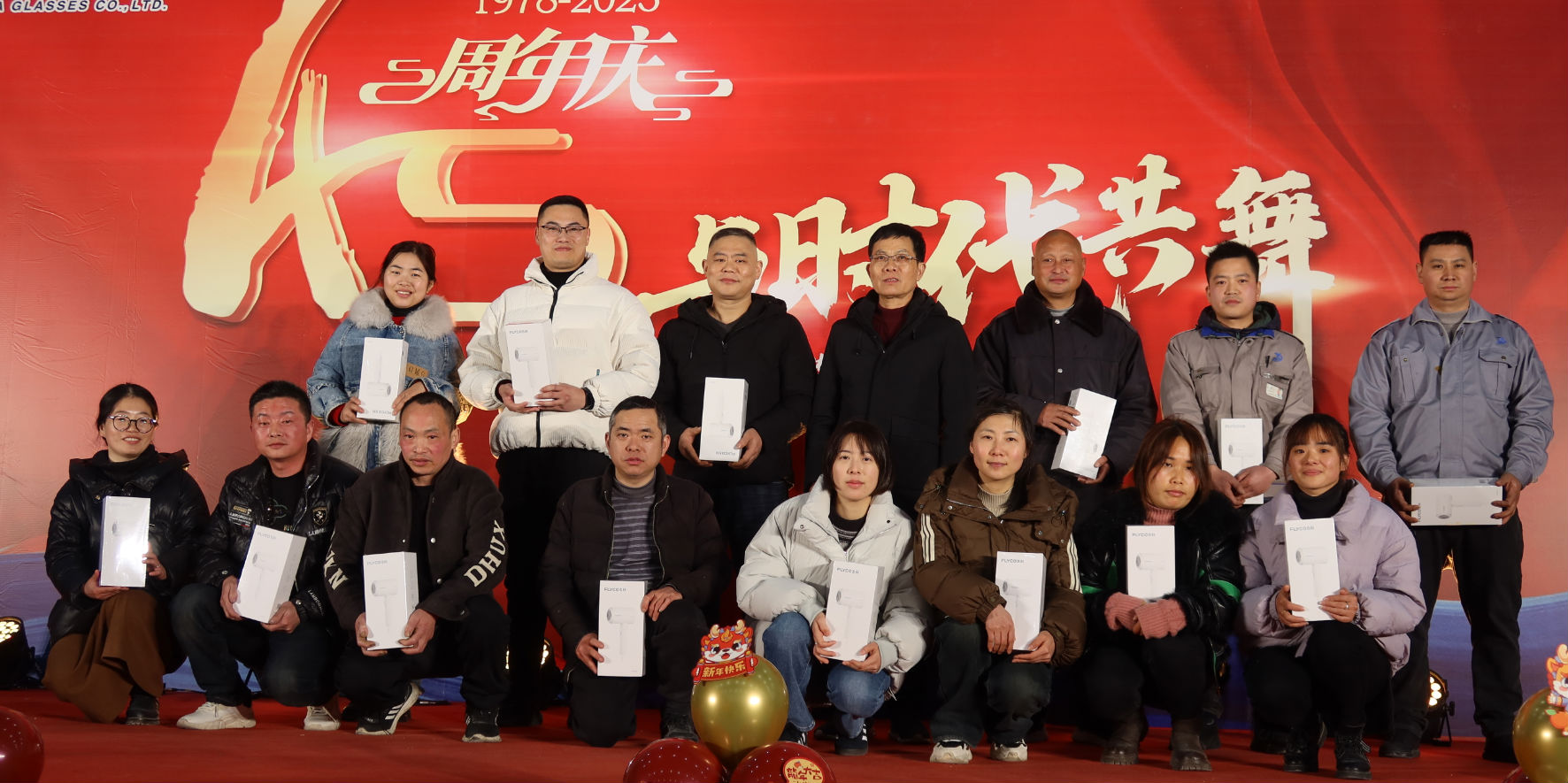 时光荏苒,岁月如梭,在经历了四十五个春秋的沉淀与积累后,浙江康华有限公司于2024年1月24日晚在公司内部隆重举行了45周年庆活动。公司董事长高克胡先生、运营总监杨香菜女生、技术副总罗邦法先生和股东及部分老朋友出席了本次活动,康华眼镜、康华铜业、康兴智能设备以及康诚贸易全体员工共同分享了45周年庆的喜悦与精彩。