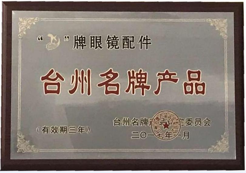 Recently,good news came from Yuhuan Market Supervision Bureau, our glasses accessoriesproducts stood out in the 2016 Taizhou Famous Brand Product Selection and wereawarded as "Taizhou Famous Brand Product". This is a significantachievement of our company's technological innovation, system innovation andquality innovation.