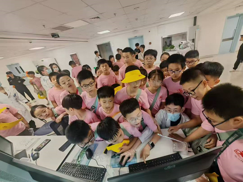 放射科里,医生瞬间化身“魔术师”,把神秘小物件藏进白色方盒,再把CT机比作“透视眼”,让孩子们亲手触摸滑轨、按下按钮,仿佛真能把物体看穿;检验科里,全自动流水线此起彼伏,“机器人手臂”嗖嗖挥舞,孩子们围着玻璃屏惊呼连连:“原来我的血常规是这样‘变’出来的!”